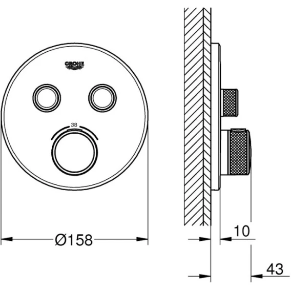 • GROHE SafeStop Plus опционно огачничитиель температуры на 43°C / 46°C, включен