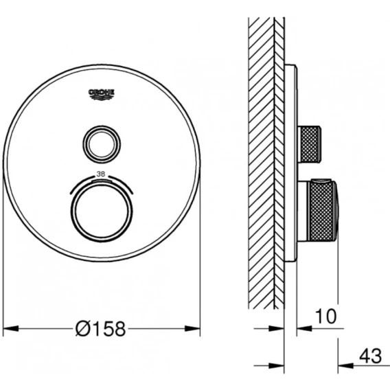 • GROHE SafeStop Plus опционно огачничитиель температуры на 43°C / 46°C, включен