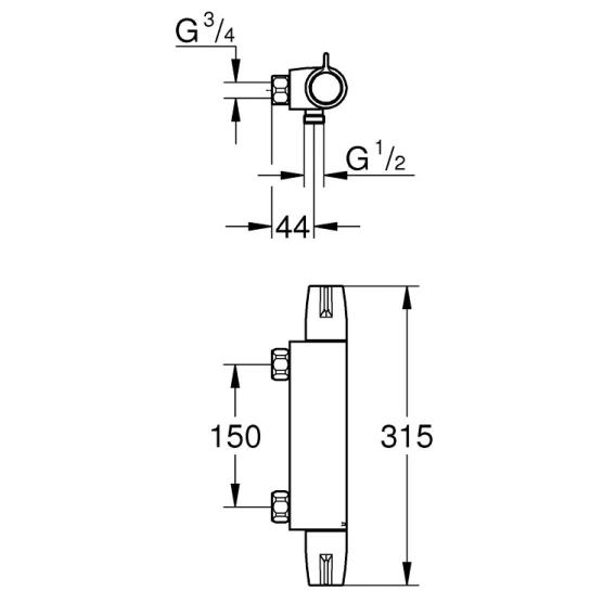 • отвод для душа снизу 1/2" со встроенным обратным клапаном