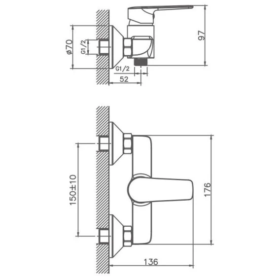Металлическая розетка, Эксцентрики, Душевой шланг, Душевая лейка, Держатель для душевой лейки