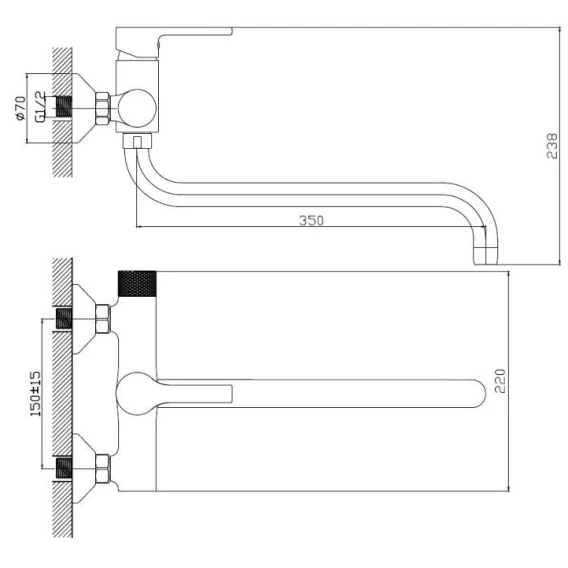 Крючок RainBowL Long 2227-8BP для ванны, черный матовый