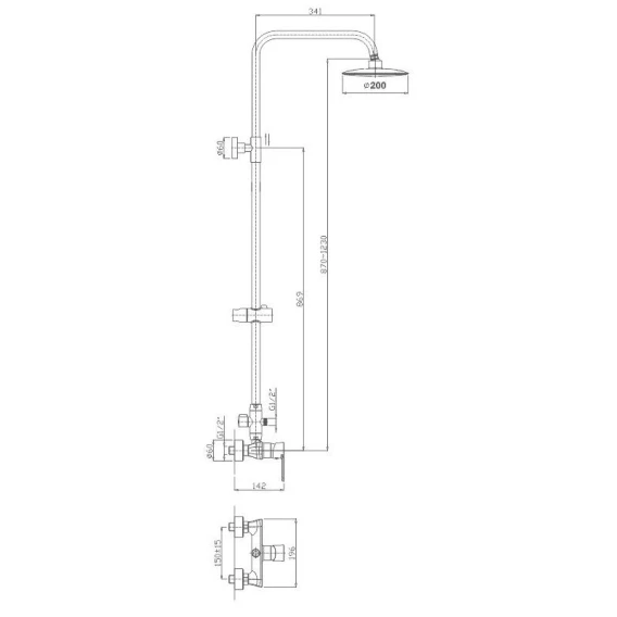 Металлическая розетка, Эксцентрики, Душевой шланг, Душевая лейка, Держатель для душевой лейки, Верхний душ, Смеситель, Кронштейн, Штанга душевая