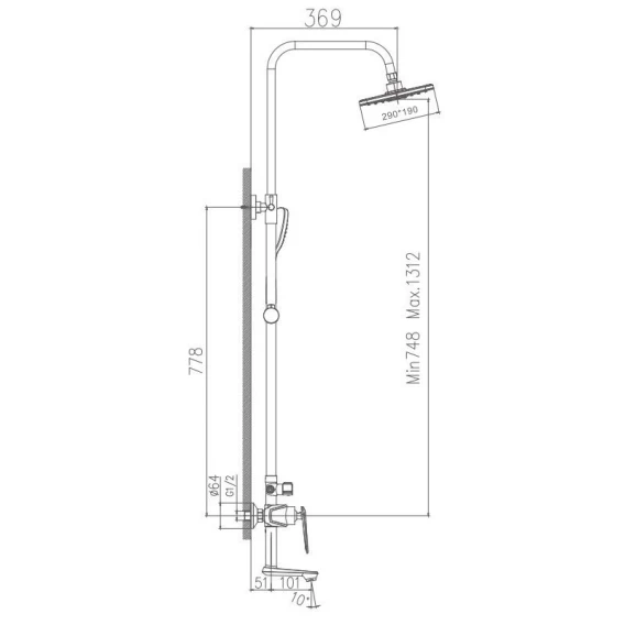 Душевая система 290x190 мм Haiba HB24548-7