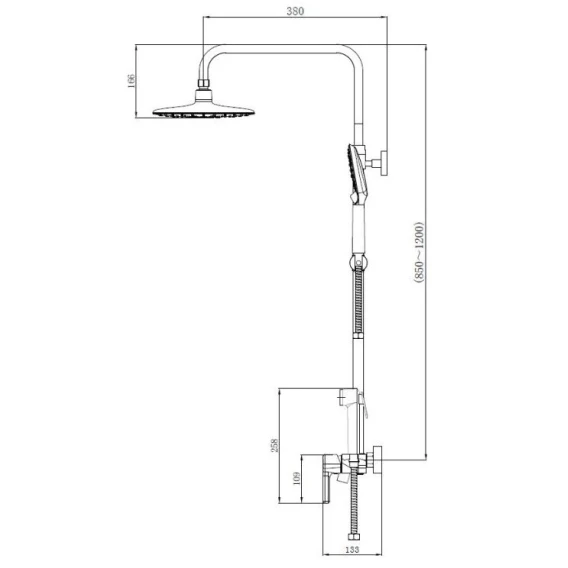Аэратор, Металлическая розетка, Эксцентрики, Душевой шланг, Душевая лейка, Держатель для душевой лейки, Верхний душ, Смеситель, Кронштейн, Штанга душевая