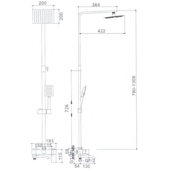 Душевая система 200 мм Haiba HB24815
