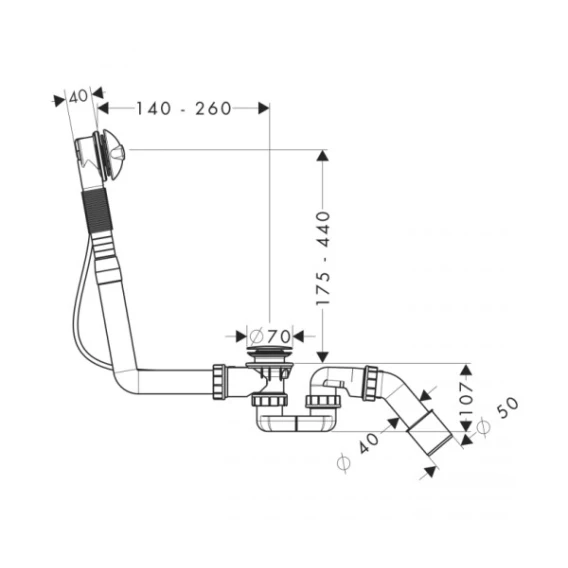 Назначение сифон для ванны Материал полимер Цвет хром Конструкция длина тросика 520 мм Комплектация видимая и скрытая части Гарантия 5 лет Производство Германия