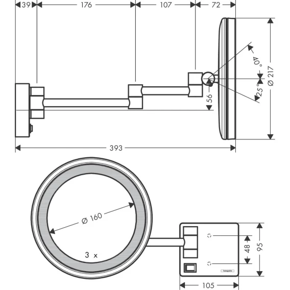 Косметическое зеркало x 3 Hansgrohe AddStoris 41790340