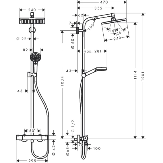 Душевая система с термостатом Hansgrohe Crometta Е 240 1jet Showerpipe 27271000
