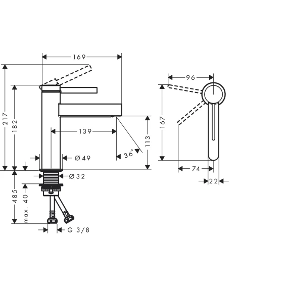 • состоит из: однорычажный смеситель для раковины, слив/перелив