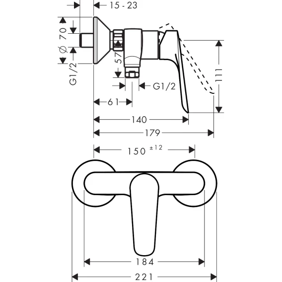 • расход воды ручным душем при 3 барах: 17 л/мин