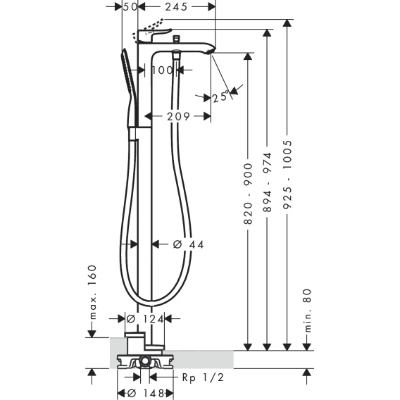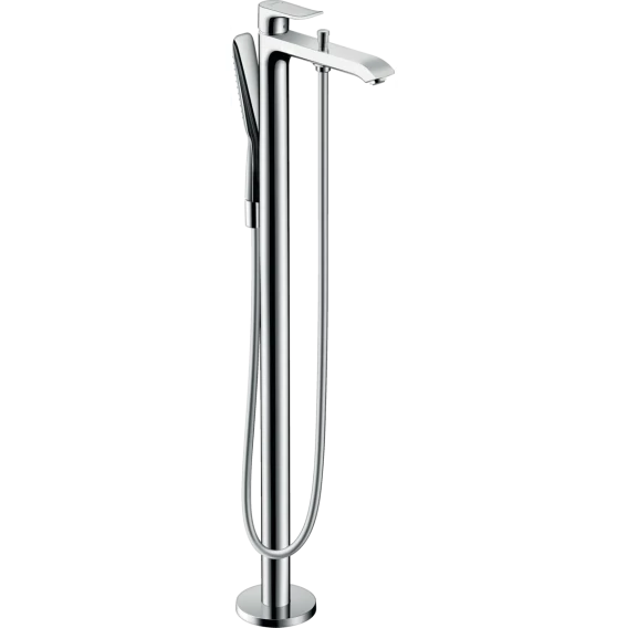 • состоит из: смеситель для ванны однорычажный, напольный, ручной душ-палочка 28558000, душевой шланг 28282000, держатель для душа.