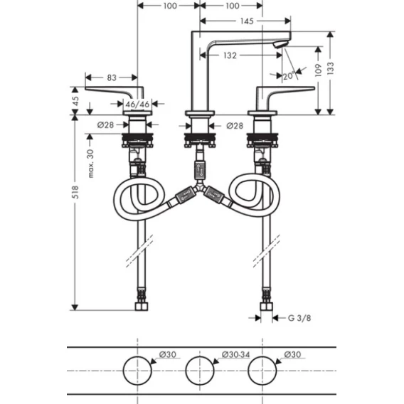Смеситель для раковины с донным клапаном Hansgrohe Metropol 74514000