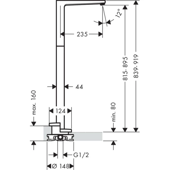 Высота излива 89.5 см