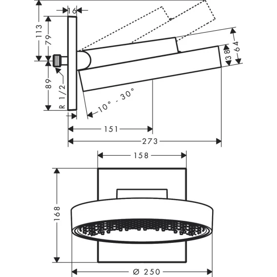 • размер душевого диска: 250 мм