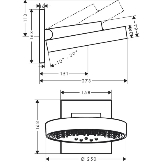 • размер душевого диска: 250 мм