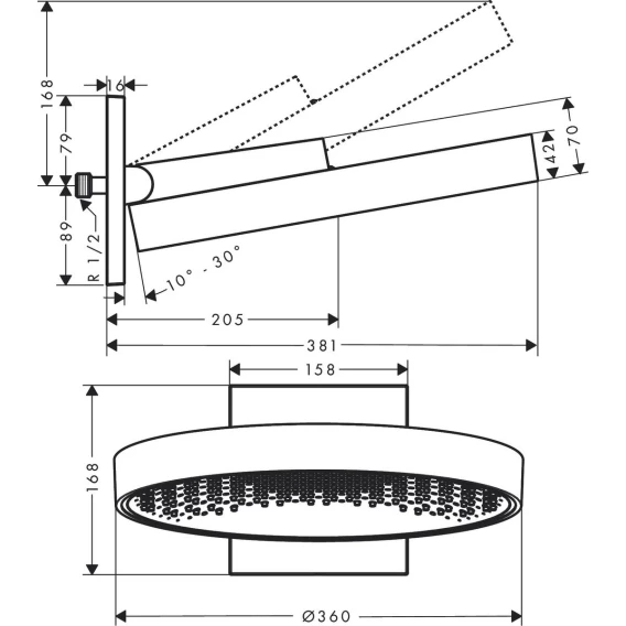 • размер душевого диска: 360 мм