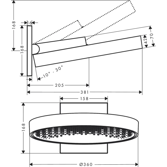 • размер душевого диска: 360 мм
