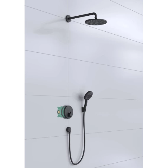 • состоит из: верхний душ, ручной душ, термостат, скрытая часть, розетка, держатель для душа, душевой шланг