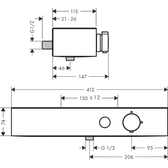 • Термостат поставляется с ручным душем с кнопкой.
