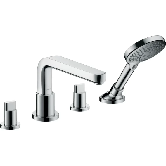 • Состоит из: смеситель на край ванны, на 4 отверстия, ручной душ 26530000, шланг для душа, держатель для душа.