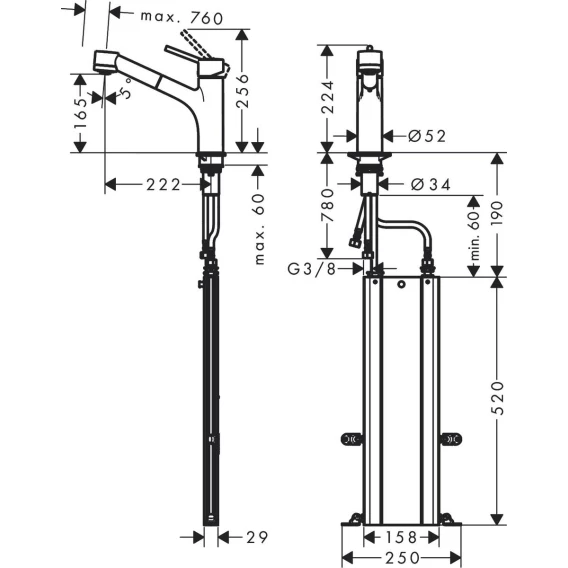 • sBox для бесшумной, плавной и защищенной проводки шлангов в шкафу под столешницей