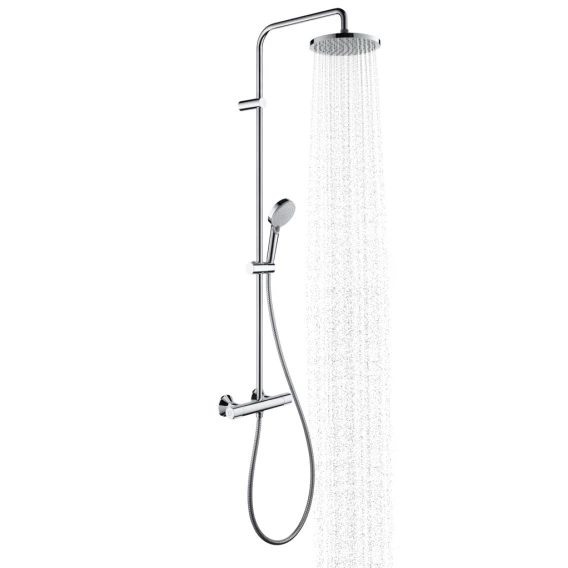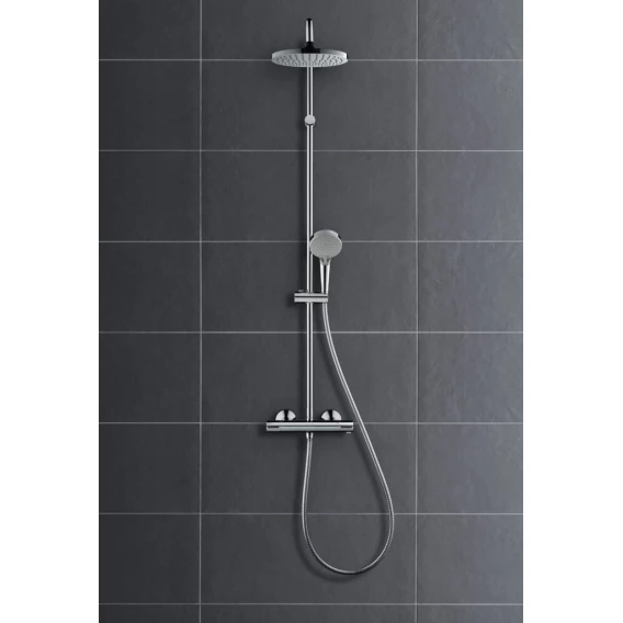 • состоит из: верхнего душа, ручного душа, термостата для душа, душевого шланга, слайдера