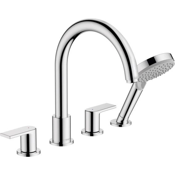 • состоит из: смесителя на край ванны на 4 отверстия, ручного душа