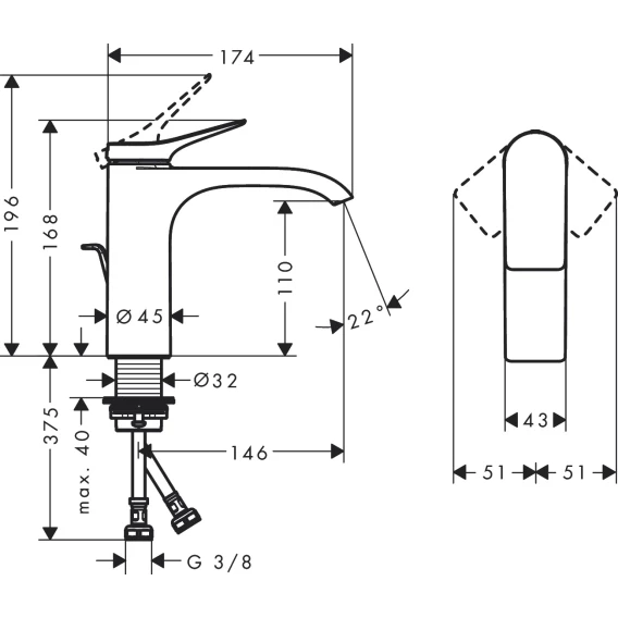 • состоит из: однорычажный смеситель для раковины, слив/перелив