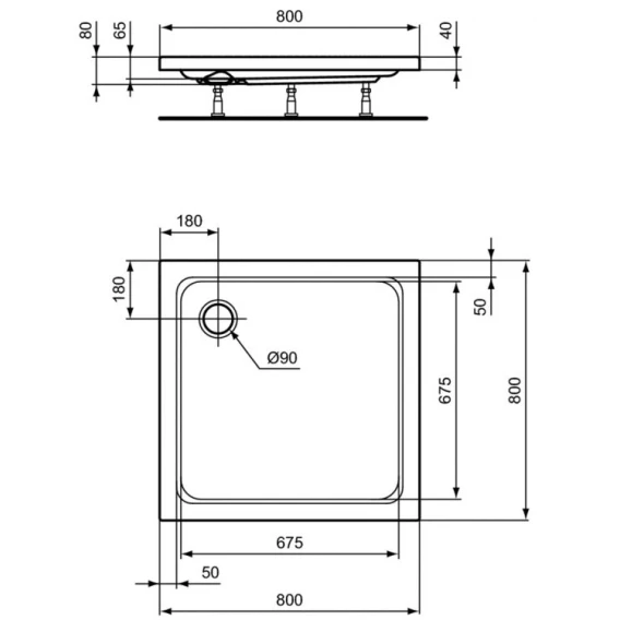 Акриловый поддон 80x80 см Ideal Standard Hotline K276601