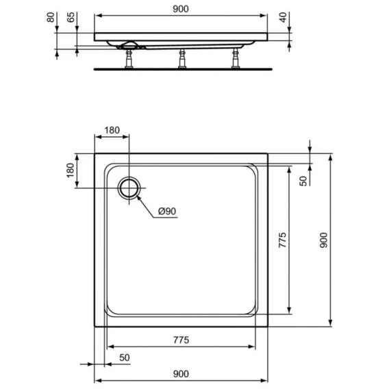 Акриловый поддон 90x90 см Ideal Standard Hotline K276701