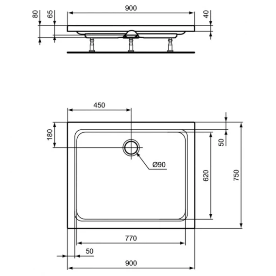 Акриловый поддон 90x75 см Ideal Standard Hotline K277201