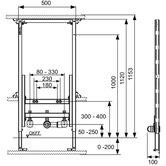 Застенный для биде TECEprofil для застенного монтажа, монтажная высота 1120 мм