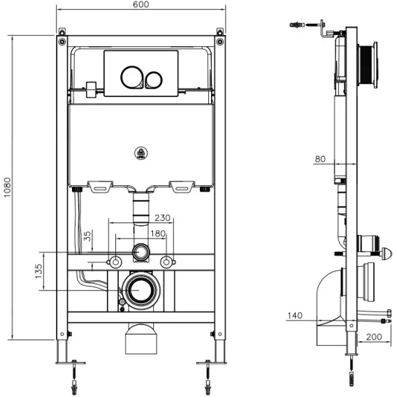 • Инсталляция предназначена для подвесного унитаза AKH1051H