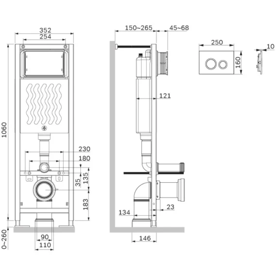 Крепление, Кнопка смыва, Инсталляционная система, Звукоизолирующая прокладка