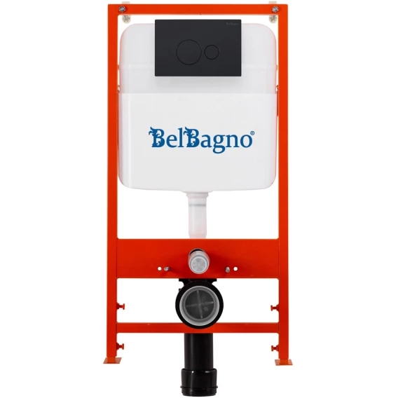 Инсталляция для унитаза BelBagno BB026 + BB084NERO с кнопкой смыва, черный матовый