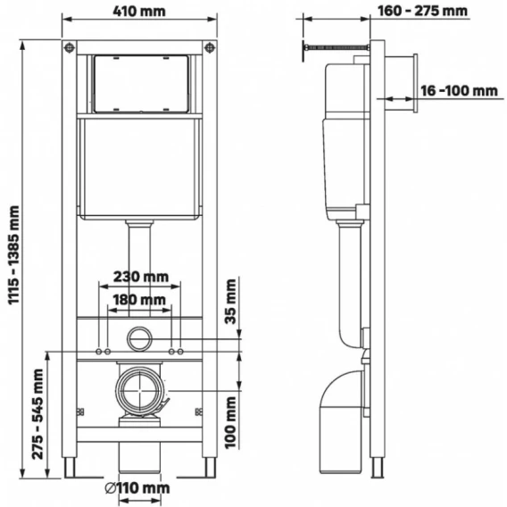 Инсталляция для унитаза Berges Atom Line 410 040341 с кнопкой смыва, белый глянец/хром