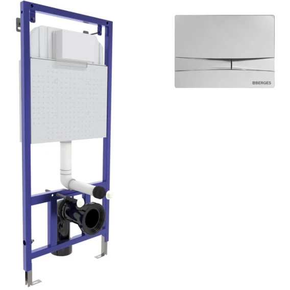 Инсталляция для унитаза Berges Novum F3 040253 с кнопкой смыва, хром