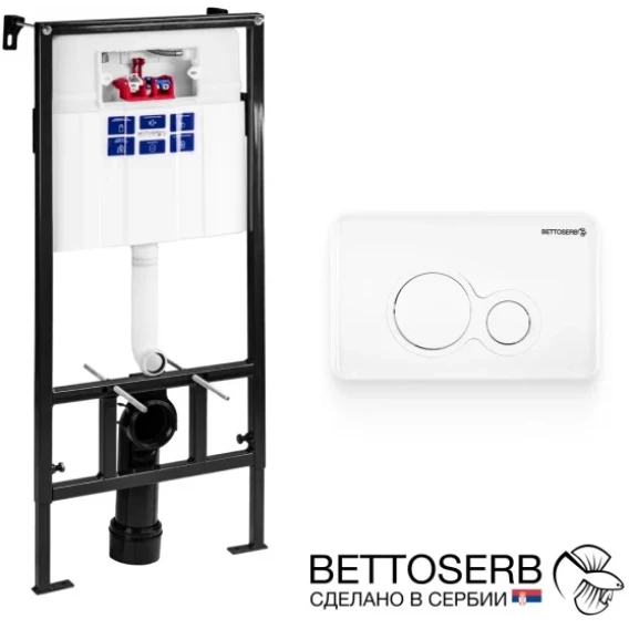Инсталляция для унитаза Bettoserb Sava Fix Slim Twin SET40006457 с кнопкой смыва, белый глянец