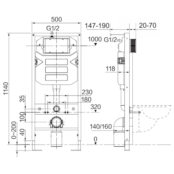 Крепление, Кнопка смыва, Инсталляционная система