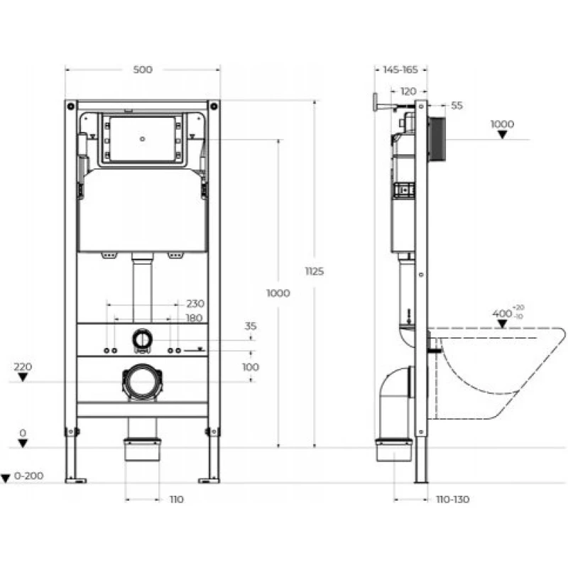 Гарантия: на каркас инсталляции и бачок -10 лет с даты продажи, на арматуру бачка - 2 года с даты продажи, сливные и наливные клапана - 5 лет, на клавишу смыва - 2 года с даты продажи