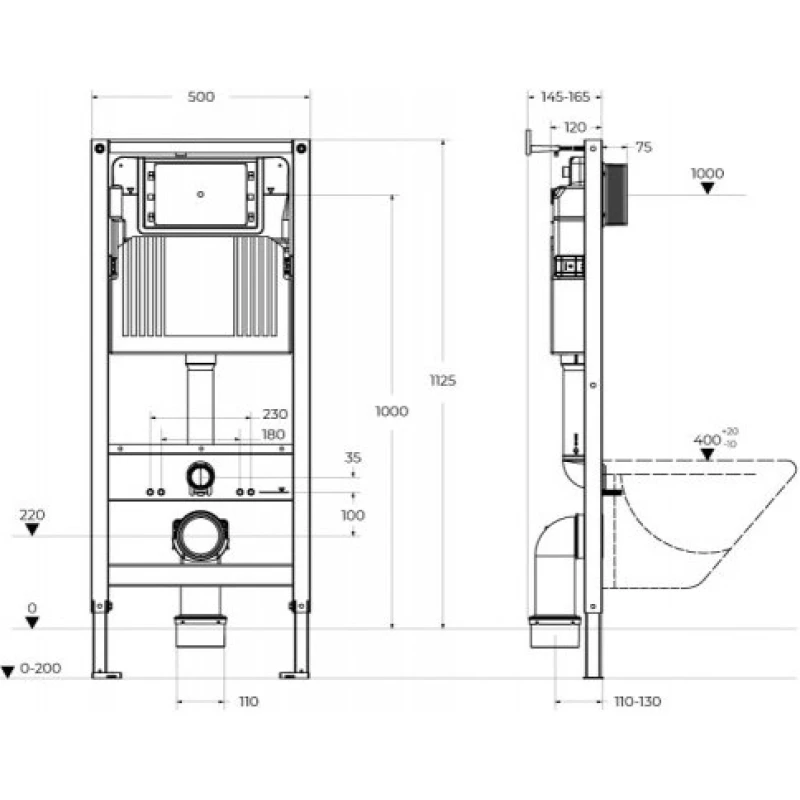 Гарантия: на каркас инсталляции и бачок -10 лет с даты продажи, на арматуру бачка - 2 года с даты продажи, сливные и наливные клапана - 5 лет, на клавишу смыва - 2 года с даты продажи
