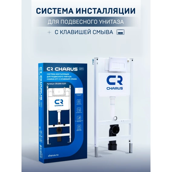 Инсталляция для унитаза Charus CR.200.12.01 с кнопкой смыва, белый матовый