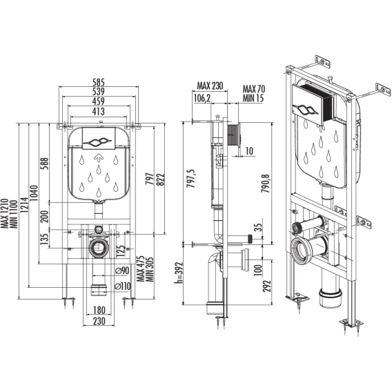 Инсталляция для унитаза Creavit FGR6003.00 сенсорная, питание от сети