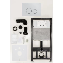 Объем поставки• 2 резьбовые шпильки М12 для крепления санфаянса• смывной механиз двойного смыва• Монтажная коробка для окна обслуживания из полистирола• Две защитные заглушки• Угловой запорный вентиль R 1/2 с кольцом-адаптером,совместимый с MeplaFix