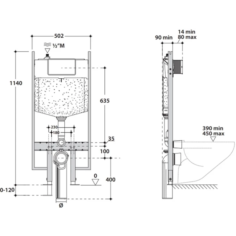 В капитальную стену, Для скрытой установки в гипсокартонной перегородке