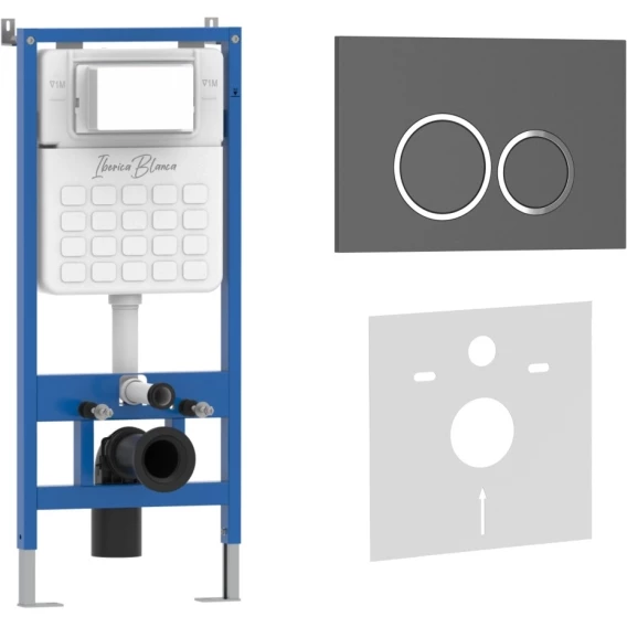 Инсталляция для унитаза Iberica Blanca Silencio Esti-O IB001.827 с кнопкой смыва, серый матовый/хром/серый матовый