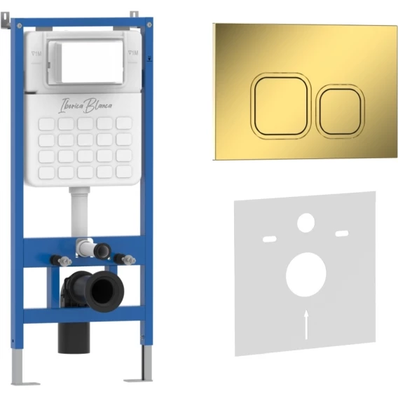 Инсталляция для унитаза Iberica Blanca Silencio Esti-Q IB001.836 с кнопкой смыва, золотой