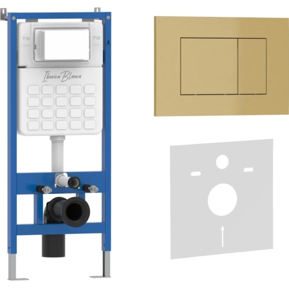 Инсталляция для унитаза Iberica Blanca Silencio Esti-S IB001.854 с кнопкой смыва, золотой матовый