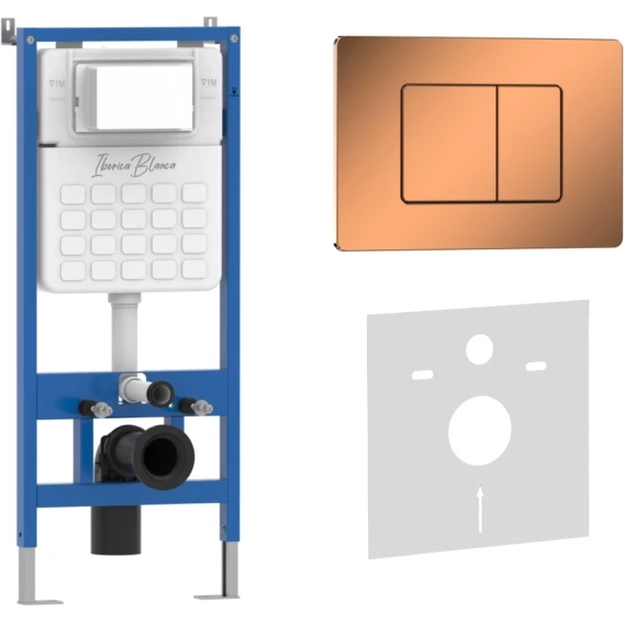 Инсталляция для унитаза Iberica Blanca Silencio Inox-C IB001.1141 с кнопкой смыва, розовое золото