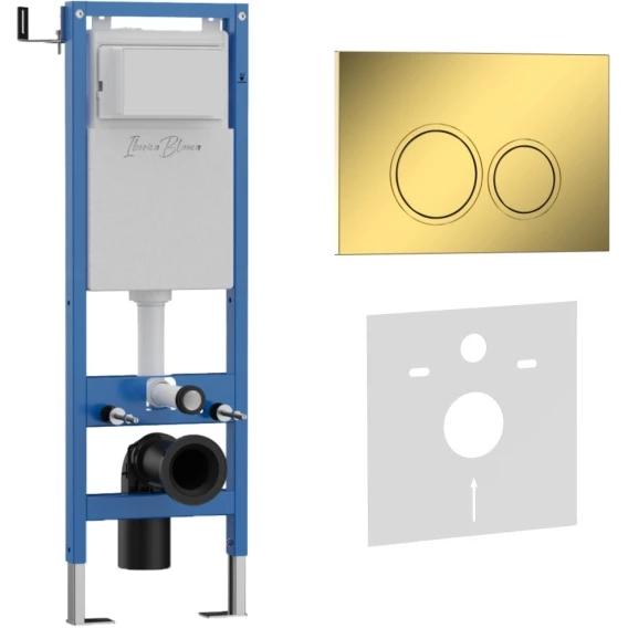 Инсталляция для унитаза Iberica Blanca Silencio Mini Esti-O IB.001M.826 с кнопкой смыва, золотой